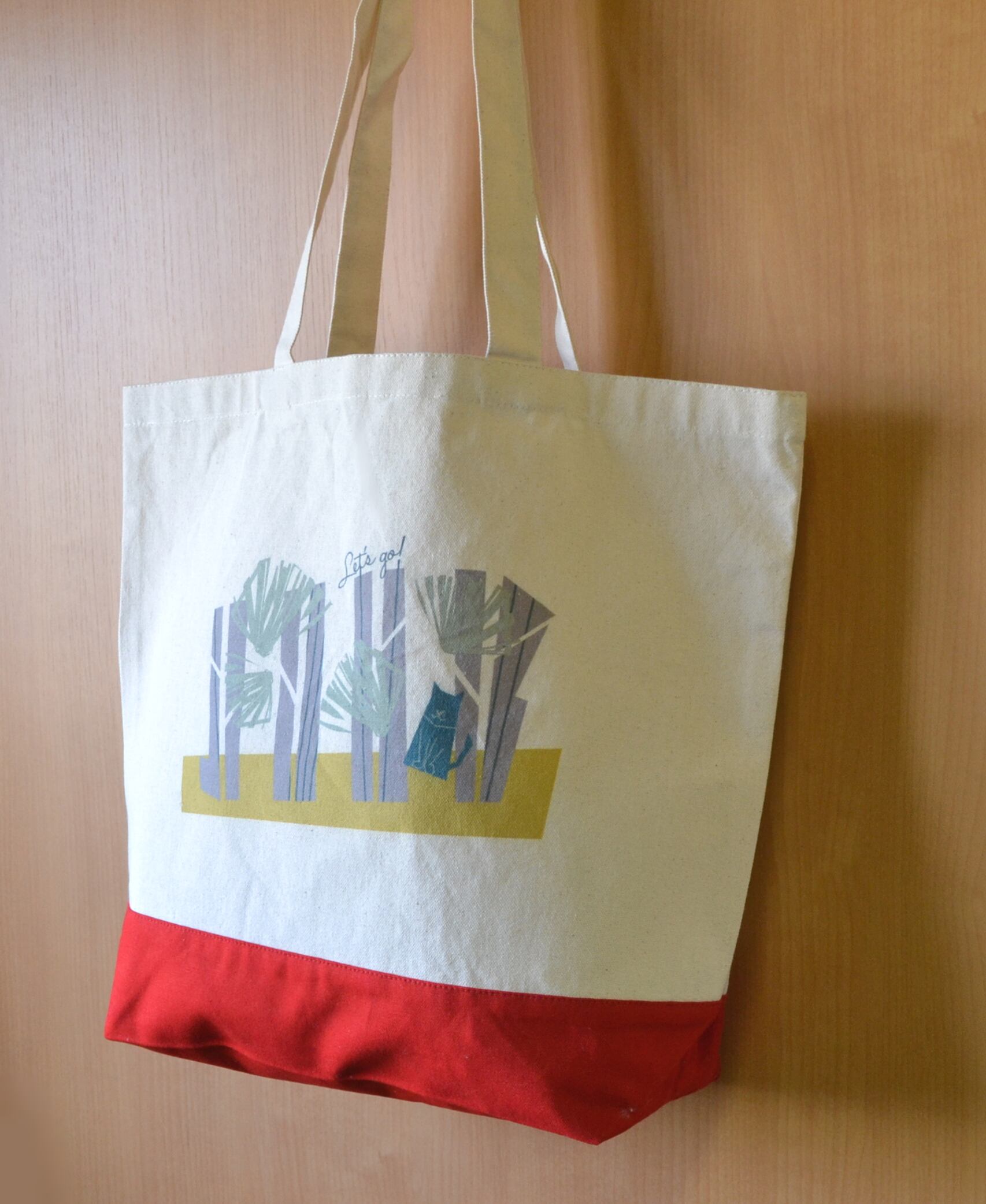 トートバッグ「散歩に行こう」Lサイズ・レッド