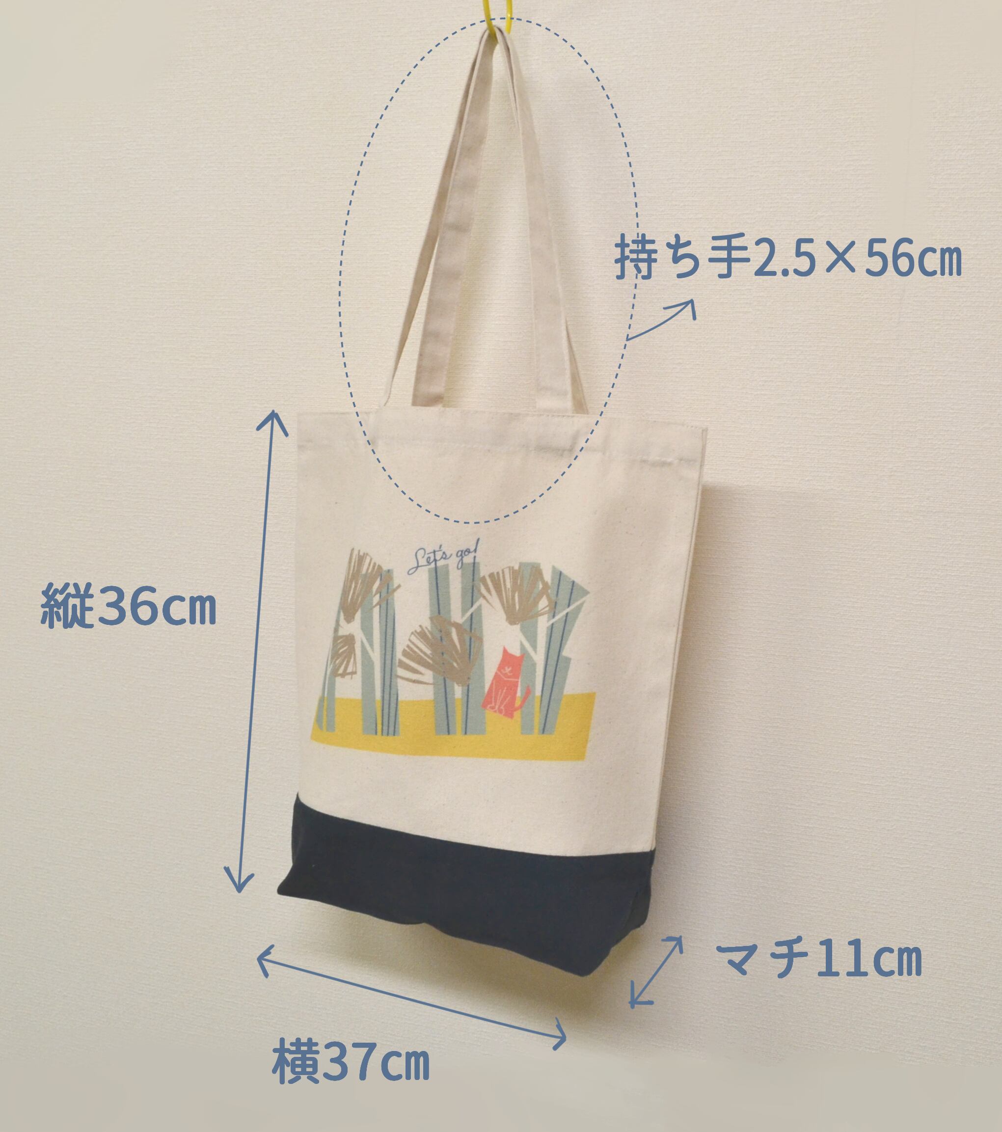 トートバッグ「散歩に行こう」Mサイズ・ブルー