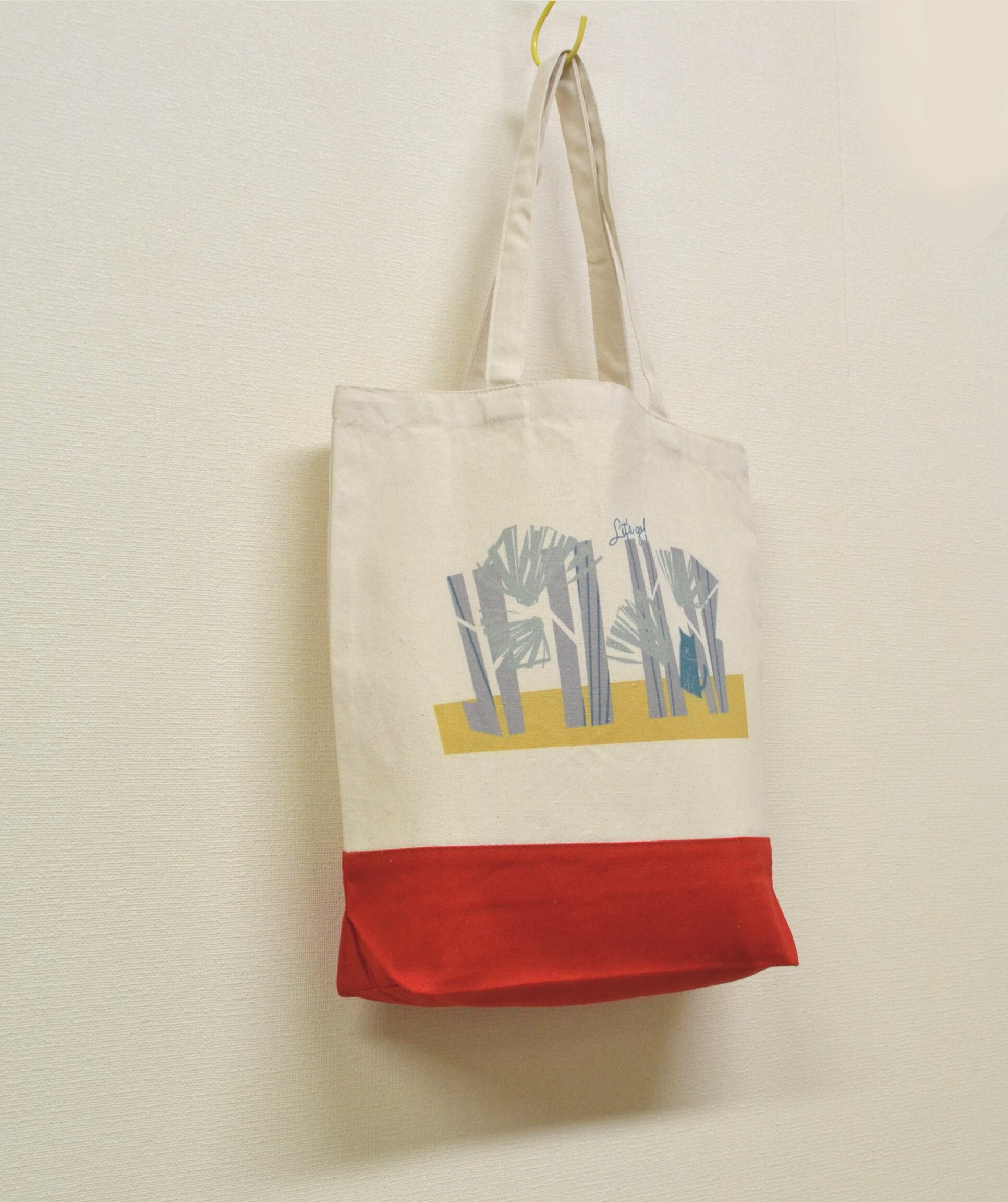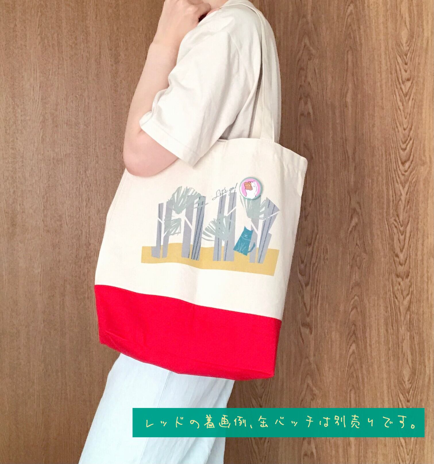 トートバッグ「散歩に行こう」Mサイズ・レッド