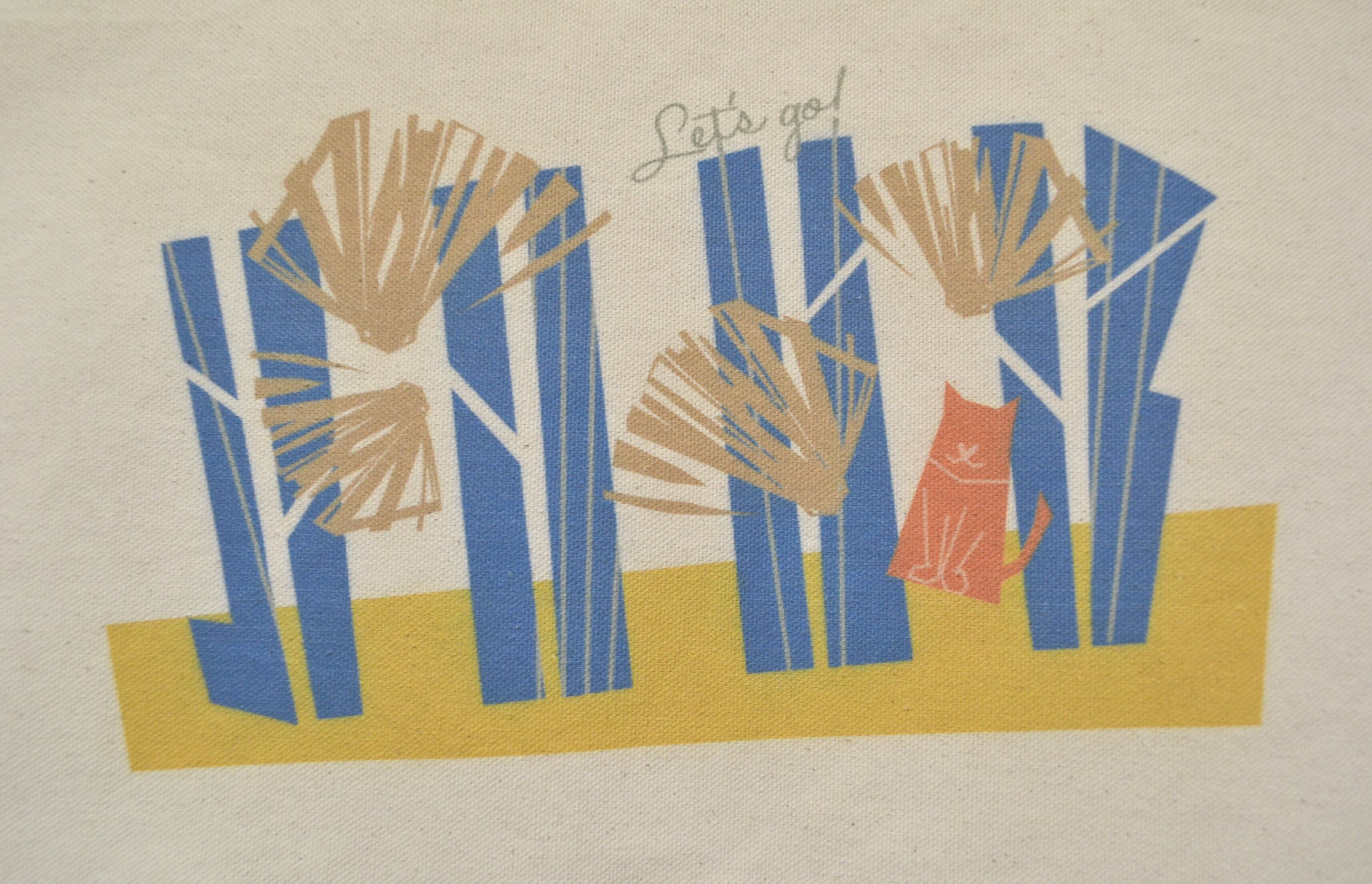 トートバッグ「散歩に行こう」Mサイズ・グレー