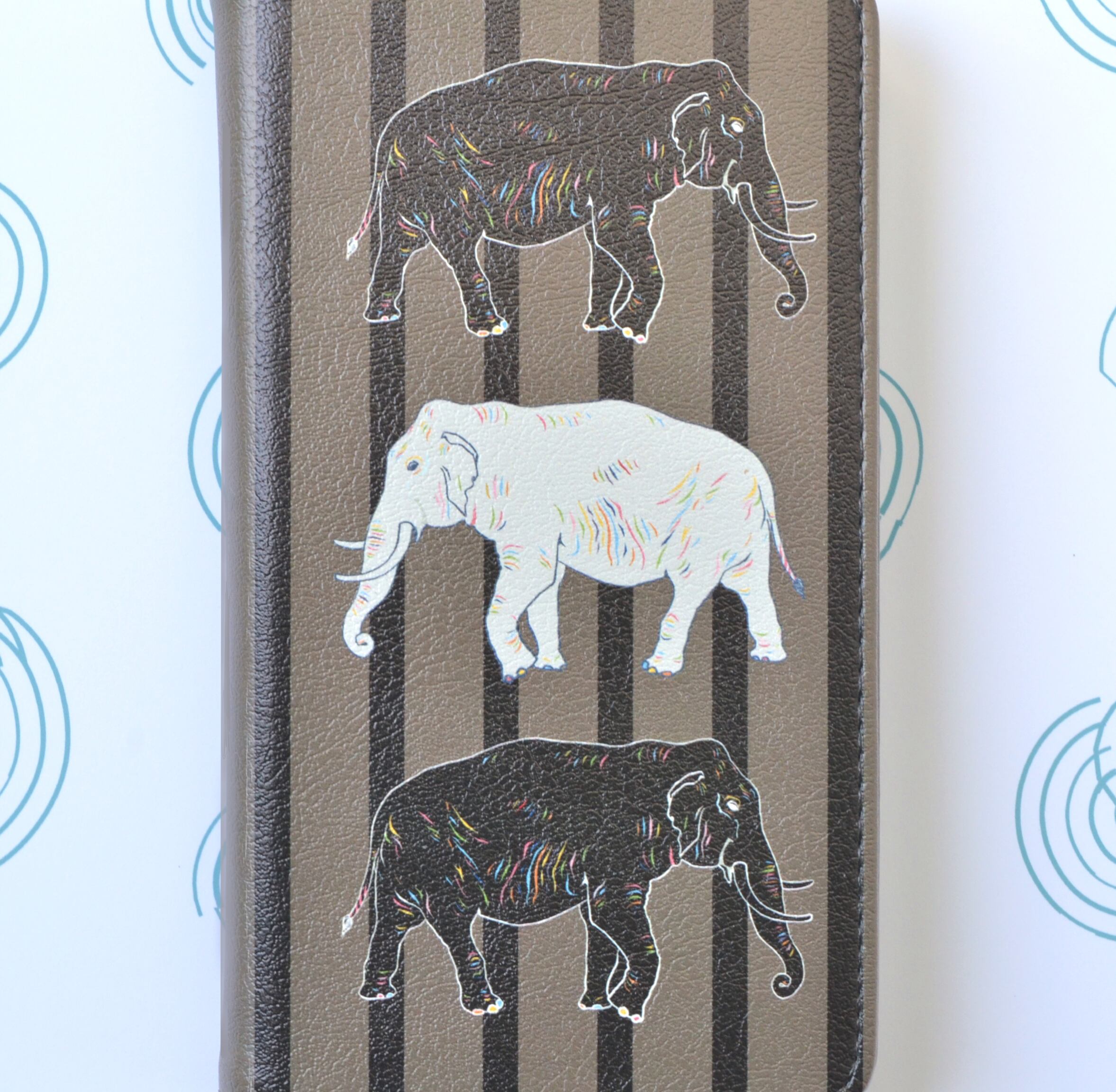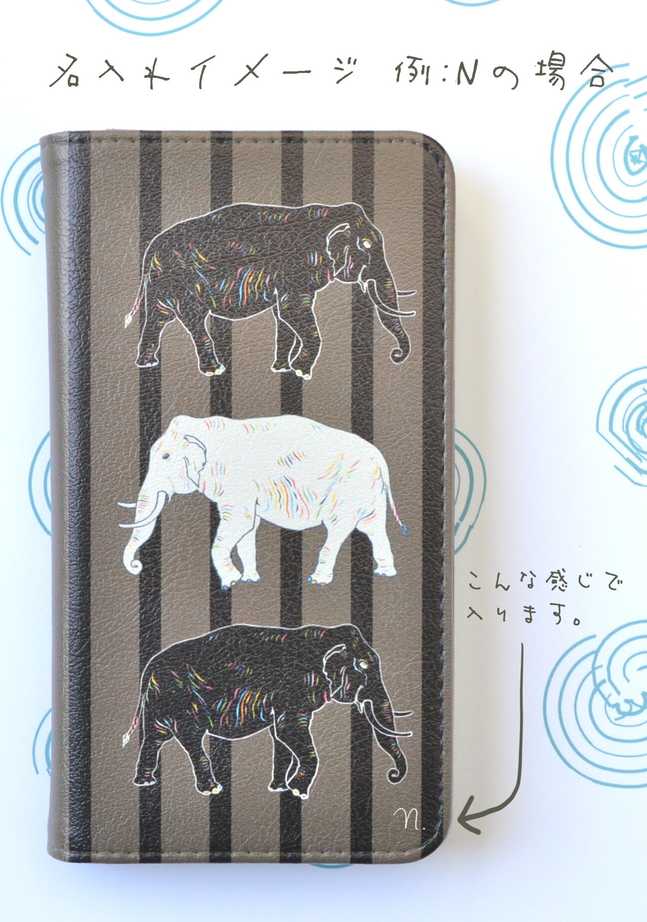 モノトーンな三頭の象にシックな色合いのストライプを合わせました。