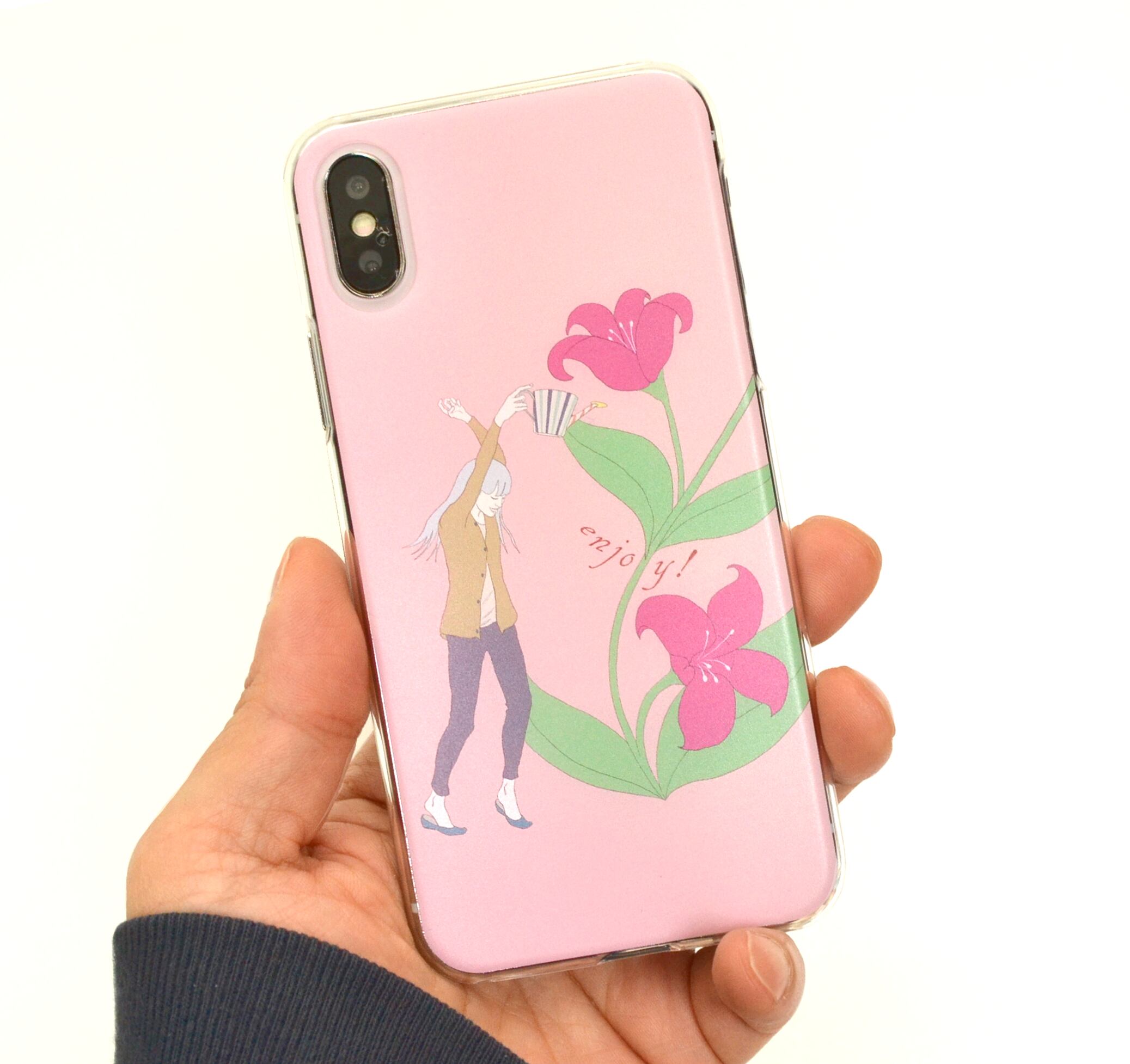 楽しそうに水やりをするお姉さんと、応えるように大きく育つ花を描きました。楽しむこと、楽しもうとする姿勢が”人生を豊かにするかも”という思いを込めたイラストです。可愛さとポップさを組み合わせたデザインです。